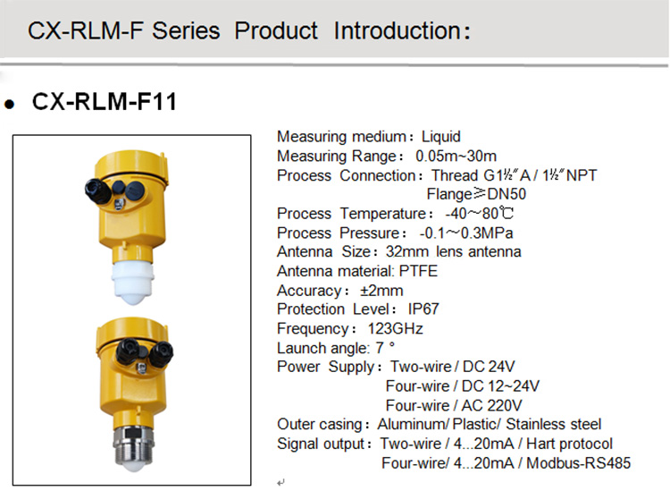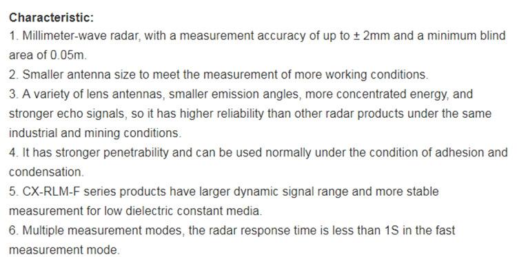 5. CX-RLM-F series products have larger dynamic signal range and more stable measurement for low dielectric constant media.