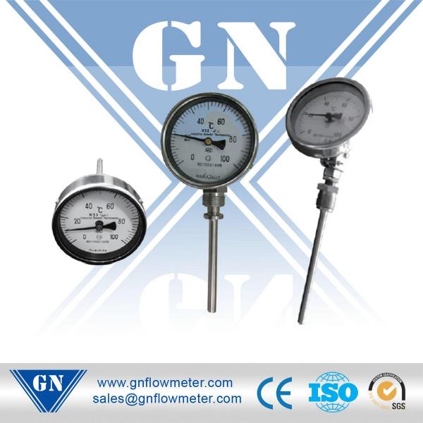 Биметаллические термометры является использование металлического листа в качестве измерителя температуры чувствительного элемента, и широко используется в механической, химической, текстильной, фармацевтической, пищевой, судостроительной и других измерений производственного процесса и контроля. Прибор имеет отзывчивую, четкие инструкции, линейная шкала, мульти-смотровые, разными температурными приборы.